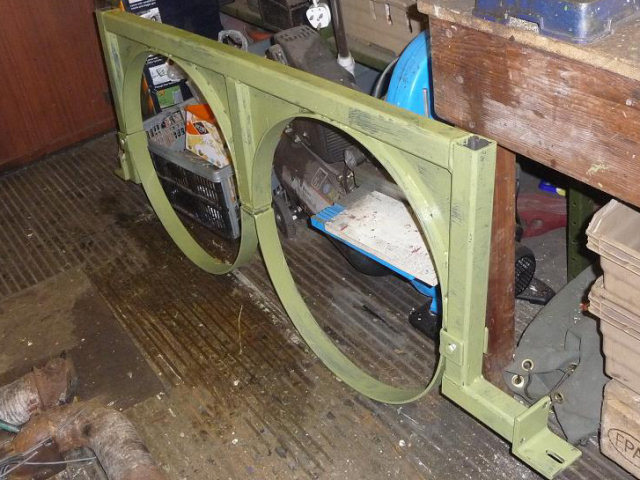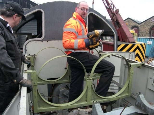 | One of the newly constructed air tank suspension frames for the 'B' end nose roof section, during treatment with anti-corrosive paint 06/02/2011 ... |