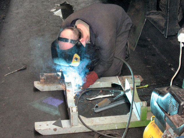 | ... Jim welding strengtheners into the adapted frame 12/06/2011. Only one auxiliary tank is needed on the loco © D9531.com |