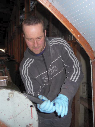 A fitted 'Rivnut' (left) and Adam booth fitting another ...