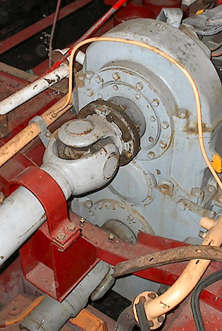 The Carden and Drive shafts exposed along with frames under the cab during dismantling 1998 (left) and a similar view taken 12/04/2004 (right). The newly painted parts do get knocked and dirty but are periodically cleaned and touched up as required, even so this pair of photos show the massive progress made © D9531.com
