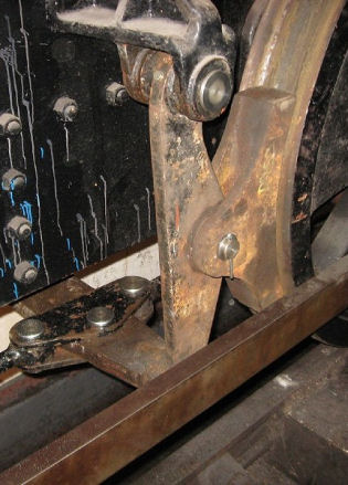 Two photos of completed brake rigging showing a completed brake block (left) and a different angle also showing one of the triangle plates fully fitted up (right) March/April 2010 © D9531.com