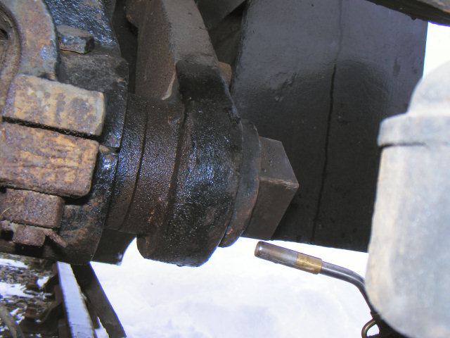 Handbrake arm being heated for removal from D9500 at Peak Rail to be copied 04/12/2010 ...