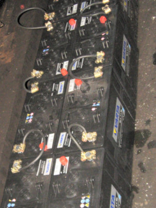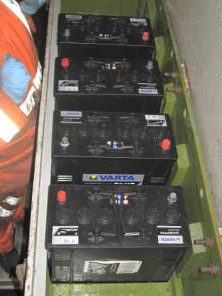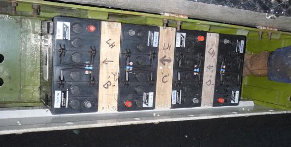 | New battery cells connected together for testing (left) and installed in one of the 'B' end battery boxes (right) 23/01/2011 ... |