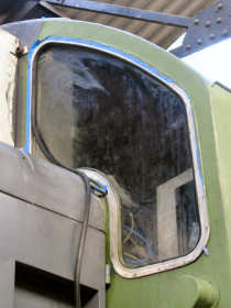 A start had been made on the first of the distinctive windscreen glasses and all four indicator box windows had been glazed the previous day so Jason and Adam started the day off by permenantly fitting the headcode boxes to A and B end nose doors. The glass was first given a quick clean and then each box fitted in turn. The chains were also re-attached to stop the doors swinging out too far.