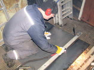 Chris & Rob departed to B & Q mid-morning to get in some supplies and materials for the cab floor. After a quick bacon butty break, Jason mounted the heat shield he had finished and new side plate in the cab along with some of the other pieces already at hand.