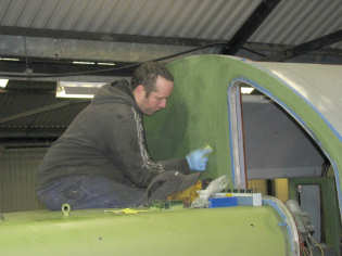 Adam painting the inside of the cab roof section