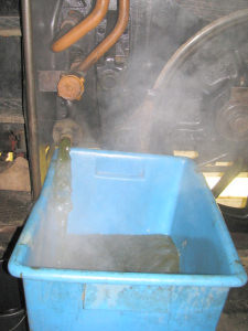 While the loco was away Carl & Matt Lindley had set up a production line making up some modified wiper shafts, arms and blades ready for fitting to the loco when it returned. Ernest returned from Ramsbottom without problems but again Alan had said that the engine temperature had been running a little high and suggested that the coolant be dropped again so that the gauze filter could be checked and cleaned out. With the loco back on shed this was done and again chunks of rust were found blocking the filter, so this was cleaned out once more and the coolant system refilled.